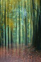 Meervoudige belichting in het bos van het Renkums beekdal in Renkum, Gelderland. De eerste foto is een gewone foto van de bomen en het pad, terwijl bij de tweede ICM is toegepast, ofwel intentional camera movement. De twee foto's zijn samengevoegd in de camera, wat voor een abstract en dynamisch geheel zorgt.