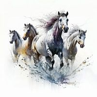 Koop dit abstracte kunstwerk Rennende Paarden Aquarel van Preet Lambon op canvas, aluminium dibond, (ingelijste) fotoprint, behang en ArtFrame, op maat geprint in Fine-Art kwaliteit.