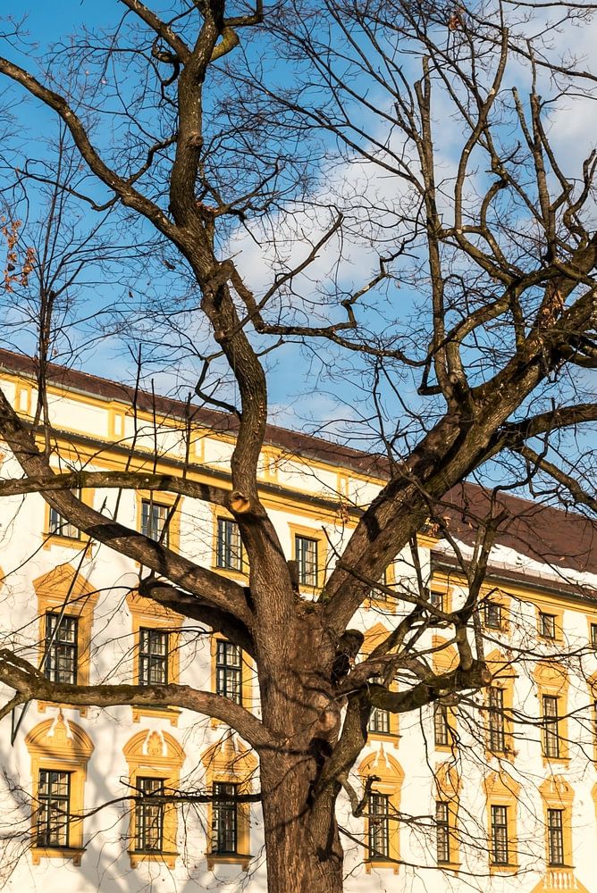 Residentie Kempten in Allgäu in de winter met kale boom Duitsland