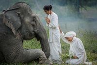In het olifanten conservatie centrum in Riau, Sumatra, Indonesie. Respect voor de natuur en het dierenrijk