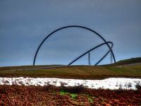 Uitzicht vanaf het hoogplateau van de Hohewardse slakkenberg in Herten B met restanten van sneeuw Uitzicht in de richting van het hemelobservatorium