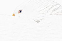 De witte gans ligt in slaaphouding met een wakend blauw oog de omgeving in de gaten houdend. Dit werk is uitgevoerd in high key waardoor het geheel een prachtig variatie aan wint tinten kent en een rustieke uitstraling.