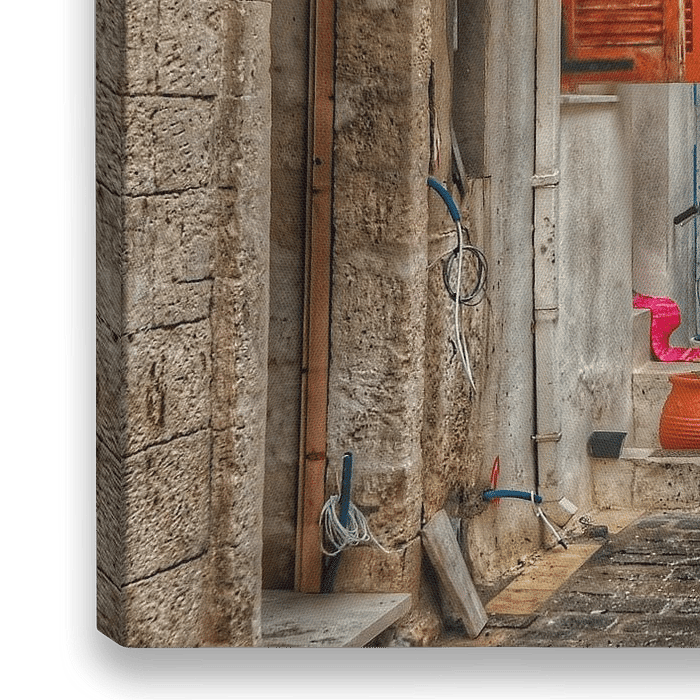 Deze sfeervolle foto is gemaakt in de stad Rethymnon op Kreta, Griekenland, en laat een van de kenmerkende, authentieke straatjes van de stad zien. Na een flinke regenbui kwam de zon weer door op deze foto.