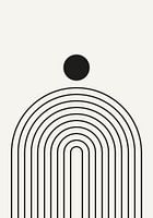 Retro 70 vintage Bauhaus stijl poster met geometrische vormen in zwart op gebroken witte achtergrond. Minimalistische moderne kunst.