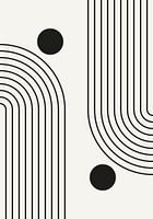 Retro 70 vintage Bauhaus stijl poster met geometrische vormen in zwart op gebroken witte achtergrond. Minimalistische moderne kunst.