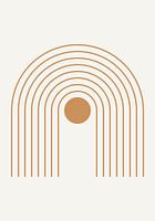 Retro 70 vintage Bauhaus stijl poster met geometrische vormen in warm goudgeel op gebroken witte achtergrond. Minimalistische moderne kunst.