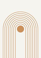 Retro 70 vintage Bauhaus stijl poster met geometrische vormen in warm goudgeel op gebroken witte achtergrond. Minimalistische moderne kunst.