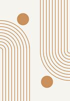 Retro 70 vintage Bauhaus stijl poster met geometrische vormen in warm goudgeel op gebroken witte achtergrond. Minimalistische moderne kunst.