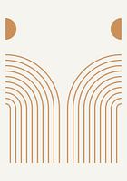 Retro 70 vintage Bauhaus stijl poster met geometrische vormen in warm goudgeel op gebroken witte achtergrond. Minimalistische moderne kunst.