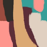 Modern abstract digitaal schilderij in heldere pastelkleuren. Geïnspireerd door retro 70s. Trendy pastelkleuren, abstracte organische vormen en lijnen, vrolijke kleuren. Basic, Scandinavisch, Modern chic, Romantisch, Bohemian interieurstijl.