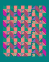 Een abstract Mid-Century Modern schilderij in hedendaagse tinten met subtiele retro vintage textuur en arceringen, de stijl van het kunstwerk is geïnspireerd door het Scandinavisch Minimalisme en het werk van Piet Mondriaan.