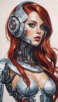 Dompel jezelf onder in een wereld waar verleden en toekomst samenkomen met "Retro Androïde: Futuristische Nostalgie," een opvallende acrylinkttekening die de grens tussen mens en machine vervaagt. Dit kunstwerk toont een vrouwelijke androïde robot met lang, vloeiend rood haar, gestyled in een charmante retro sixties look. De perfecte…