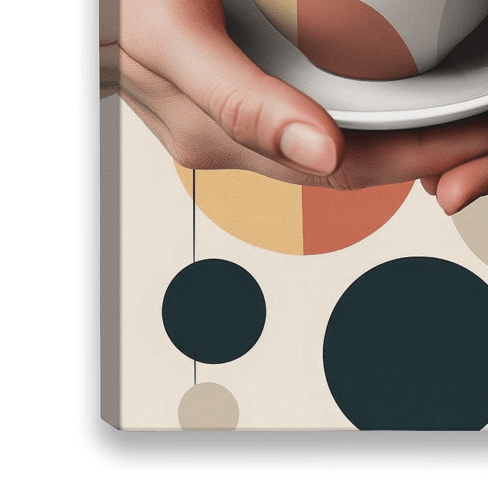 Digitale kunst met heerlijke koffie en met veel grafische vormen en kleuren en een lekkere jaren 70 vibe.