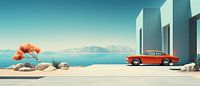 Koop dit digital art kunstwerk Retro Auto in Moderne Oase van ByNoukk als reproductie op canvas, aluminium dibond, (ingelijste) fotoprint, behang en ArtFrame, op maat geprint in Fine-Art kwaliteit.