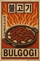 Haal de zinderende energie van de Koreaanse BBQ in huis met deze Bulgogi retro poster. Met vlammen, gekarameliseerd rundvlees en knoflook in een gedurfd pop-art ontwerp, weerspiegelt deze print de geest van het beroemdste gegrilde gerecht van Korea. Bulgogi, wat "vuurvlees" betekent, is gemarineerd rundvlees dat tot in de perfectie is bereid en wereldwijd wordt gesmaakt om zijn zoete en hartige smaak. Het artwork combineert vintage typografie, verweerde texturen en traditionele Koreaanse ontwerpelementen, waardoor een nostalgische en toch moderne look ontstaat. Dit kunstwerk is perfect voor keukens, restaurants of muren met een voedselthema en spreekt BBQ-liefhebbers, fijnproevers en designliefhebbers aan. Door de retrostijl is het zowel een culturele viering als een conversatiestarter. Ideaal om cadeau te geven aan fans van de Koreaanse keuken, grillmeesters of iedereen die iconische voedselposters waardeert. Dit Bulgogi kunstwerk is niet zomaar een muurdecoratie, het is een eerbetoon aan de wereld van de Koreaanse barbecue en haar wereldwijde populariteit.
