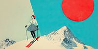 Dit kunstwerk toont een retro vrouw op ski’s op een berg. De houding laat beweging en pauze tegelijk zien. De scène bestaat uit een berg, een hemel en een cirkel die als zon gelezen kan worden. Door de plaatsing van de vrouw ontstaat een spel tussen mens en ruimte. Dit werk past aan de muur omdat het rust brengt zonder leegte. Het…