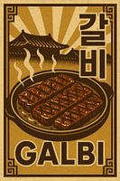 Deze Galbi-poster benadrukt de rokerige rijkdom van Koreaanse short ribs in een gedurfde retrostijl. Met zijn aardse gouden tinten, opstijgende stoom en vintage Koreaanse typografie doet het kunstwerk denken aan de nostalgie van oude restaurantborden en posters van voedselmarkten. Galbi, gegrilde korte ribbetjes van rund- of varkensvlees gemarineerd in sojasaus, knoflook en sesamolie, is een hoofdbestanddeel van de Koreaanse BBQ en wereldwijd favoriet. Het retro pop-art ontwerp vangt zowel traditie als moderniteit, waardoor het perfecte muurkunst is voor keukens, BBQ-restaurants of woonkamers. De verweerde textuur geeft het een tijdloos karakter, aantrekkelijk voor kunstverzamelaars, fijnproevers en liefhebbers van de Koreaanse cultuur. Of je nu een fan bent van grillen, van de Aziatische keuken houdt of gewoon van opvallende posters in vintage stijl, dit Galbi kunstwerk zal smaak en warmte aan je muur brengen. Een geweldig cadeau voor Koreaanse BBQ liefhebbers of iedereen die houdt van gedurfd grafisch ontwerp.