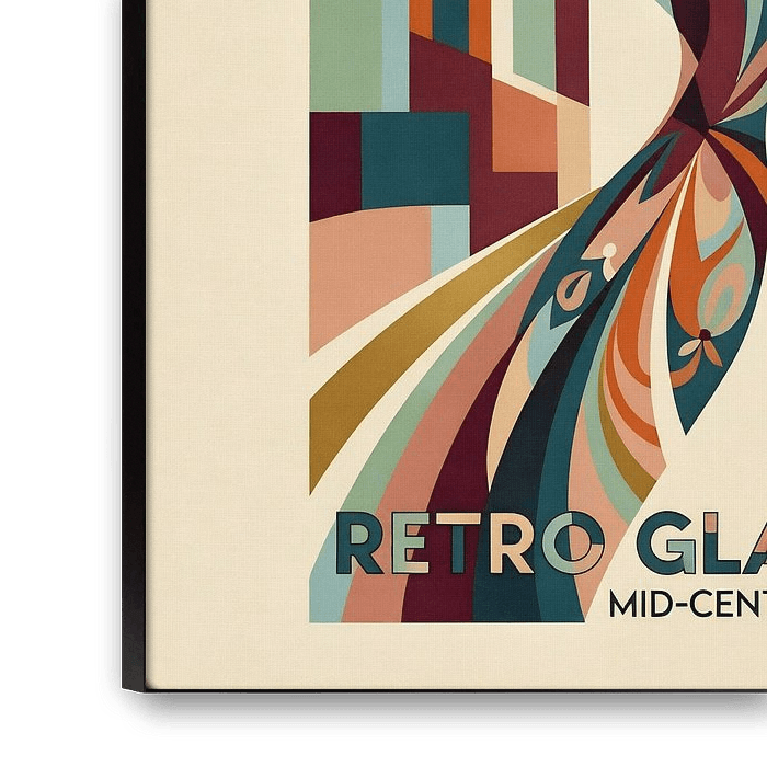 Dit werk, getiteld *Retro Glamour: Mid-Century Muses*, is een viering van elegantie, nostalgie en de tijdloze allure van mid-century modern design. Centraal staat de muze - een vrouw wiens profiel gratie en verfijning belichaamt. Haar vloeiende jurk en ingewikkelde kapsel zijn geïnspireerd op de organische vormen en gedurfde patronen van de jaren 1950 en 1960, waarbij vloeiendheid en structuur in elkaar overgaan. De wervelende bloemmotieven in haar haar en jurk symboliseren creativiteit en de onderlinge verbondenheid van kunst en natuur.