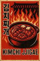 Vier de vurige smaken van Korea met deze retro-stijl Kimchi Jjigae poster. Met gedurfd rood, diep zwart en vintage pop-arttexturen geeft dit kunstwerk de hitte en het comfort van de meest iconische stoofpot van Korea weer. Kimchi Jjigae, gemaakt met oude kimchi, tofu, varkensvlees en rijke bouillon, is een gerecht dat in huishoudens en restaurants in heel Korea wordt geserveerd. Het ontwerp combineert vlammen en traditionele Koreaanse patronen en roept warmte, traditie en culturele trots op. Deze print is perfect als muurkunst voor keukens, restaurants of woonkamers en spreekt zowel fijnproevers, reizigers als kunstverzamelaars aan. De retro distressed look voegt authenticiteit toe, waardoor het aanvoelt als een tijdloze culinaire advertentie. Ideaal cadeau voor fans van de Koreaanse keuken, kimchi-liefhebbers of iedereen die een gedurfd grafisch ontwerp waardeert. Breng een voorproefje van Korea's soul food in je huis met deze unieke poster die de eetcultuur en vintage kunst naadloos in elkaar laat overvloeien.