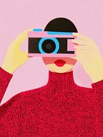 Een levendig en speels kunstwerk waarin een retro camera en een jonge fotografe samenkomen in een perfect moment van creativiteit. Met een dromerige blik richt ze haar lens op de wereld, klaar om een tijdloos beeld vast te leggen. De warme kleurencombinatie van rood, rozel en geel contrasteert prachtig met de strakke lijnen van de…