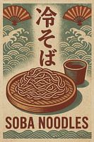 Vier de elegantie van de traditionele Japanse keuken met deze retro Soba Noodles poster. Ontworpen in een vintage pop-art stijl, toont het kunstwerk een portie koude soba noedels op een bamboe dienblad met dipsaus, omlijst door golfpatronen en Japanse waaiers. De gedempte groene, beige en dieprode tinten geven het werk een tijdloze charme, waardoor het een opvallende verschijning is in de keuken, eetkamer of Japans restaurant. Soba noedels, gemaakt van boekweit, zijn een essentieel onderdeel van de Japanse eetcultuur, vaak gekoeld in de zomer of warm in een troostende bouillon. Dit kunstwerk is een eerbetoon aan dat culinaire erfgoed en presenteert het in een gedurfde, grafische stijl die doet denken aan oude reis- en voedselposters. Deze print is perfect voor fans van de Japanse keuken, de Aziatische eetcultuur of retro muurkunst en is veelzijdig en stijlvol. Voeg hem toe aan je keuken, bar of café om je muren te doordrenken met Japanse traditie en vintage design.
