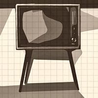 Modern, bijna kubistisch werk, in de kleuren van de jaren 70. Retro televisie.