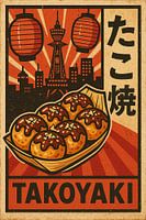 Retro Takoyaki Poster - Vintage Osaka Street Food Muurkunst van Travel Shop