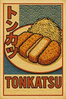 Voeg een gedurfd culinair statement toe aan je muren met deze retro Tonkatsu poster, met de beroemde gepaneerde varkenskotelet van Japan in een vintage design. Het kunstwerk belicht een perfect gouden tonkatsu geserveerd met geraspte kool, omlijst door Japanse golfmotieven en traditionele tekst. Met warm geel, diep blauw en krachtige contouren straalt deze print de charme uit van Japanse retroposters en viert hij een van de meest geliefde en comfortabele gerechten van het land. Deze poster is perfect voor keukendecoratie, eetkamers, cafés of Japanse restaurants en combineert nostalgie en eetlust in één. Tonkatsu, bekend om zijn knapperige coating en malse vlees, is al meer dan een eeuw een hoofdbestanddeel van de Japanse keuken, een mix van westerse invloeden met Japanse culinaire kunstzinnigheid. Deze muurkunst legt die heerlijke fusie vast in een tijdloze stijl. Of je nu een liefhebber van eten bent, een reiziger geïnspireerd door Japan of een verzamelaar van retro kunstwerken, deze Tonkatsu poster is een smaakvolle en stijlvolle toevoeging aan elk interieur.