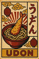 Haal de warmte van de traditionele Japanse keuken in huis met deze retro Udon poster, prachtig ontworpen in een gedurfde vintage pop-art stijl. Met een dampende kom dikke, troostende udon noedels overgoten met knapperige gouden tempura garnalen, vangt dit kunstwerk het hart van de Japanse eetcultuur. De rijke rode, warmbeige en gouden tinten, gecombineerd met Japans schrift en lantaarnmotieven, roepen de nostalgische sfeer op van de drukke ramenwinkels en gezellige noodlehuizen in Tokio. Deze muurschildering van Japans eten is perfect voor keukens, eetkamers of restaurants die een authentiek vleugje culinaire traditie willen toevoegen. Ideaal voor liefhebbers van eten, reizigers en fans van de Japanse cultuur, maar ook een uniek cadeau. Gedrukt met fijne details en retro textuur, combineert deze Udon print kunst en smaak in een tijdloos stuk dat de schoonheid van Japans dineren viert. Verhoog je muurdecoratie met dit opvallende vintage Japanse noedel kunstwerk.