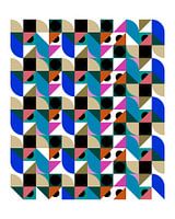 Een abstract Mid-Century Modern schilderij in hedendaagse tinten met subtiele retro vintage textuur en arceringen, de stijl van het kunstwerk is geïnspireerd door het Scandinavisch Minimalisme en het werk van Piet Mondriaan.
