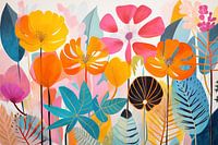Grote bloemen en bladeren. Vintage of Landelijk Chic met kleurige patronen. Natuur aan de muur.