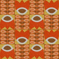 Deze patronen zijn ideaal om een speels en toch geraffineerd tintje te geven aan interieurs, vooral in ruimtes met een retro, Scandinavische, mid-eeuwse of eclectische inrichting. Het kleurenpalet - denk aan mosterdgeel, vervaagd oranje, olijfgroen en zacht bruin - biedt een gezellige en uitnodigende sfeer, perfect voor woonkamers, creatieve studio's of kinderkamers.