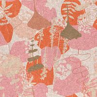 Roze, oranje en beige kleuren. Eenvoudige geometrische vormen en linnen textuur.