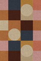 Retro geïnspireerd abstract geometrisch patroon met eenvoudige vormen in pastelkleuren.