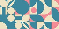 Modern abstract geometrisch kunstwerk met cirkels en strepen in retrostijl. Pastelkleurig grafisch patroon met eenvoudige vormen. Kunstwerk voor Modern, Design, Retro, Eclectisch, Industriële woonstijl.