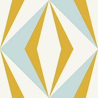 Over ‘Retro geometrie met driehoeken in Bauhaus-stijl in geel en blauw 1’ van Dina Dankers