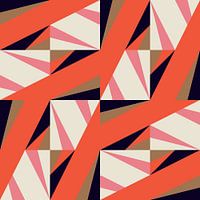 Modern abstract geometrisch kunstwerk met driehoeken en vierkanten in retrostijl. Pastelkleurig grafisch patroon met eenvoudige vormen.