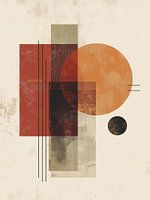 Moderne abstracte wanddecoratie in aardse roest-, stoforanje- en beigetinten. Met zijn gelaagde vormen en textuur brengt dit kunstwerk warmte en structuur in minimalistische, retro of Scandinavische ruimtes.