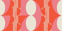 Modern abstract geometrisch kunstwerk met cirkels, rechthoeken, vierkanten en strepen in retro Bauhaus-stijl. Pastelkleurig grafisch patroon met eenvoudige vormen in vintage jaren '70 stijl.