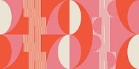 Modern abstract geometrisch kunstwerk met cirkels, rechthoeken, vierkanten en strepen in retro Bauhaus-stijl. Pastelkleurig grafisch patroon met eenvoudige vormen in vintage jaren '70 stijl.