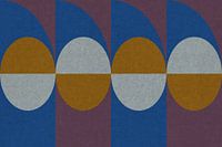 Collage van geometrische vormen en texturen in retrokleuren.