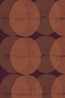 Collage van monotype print van geometrische vormen in warme verbrande oranje en crème kleuren en donkerbruine linnenlook achtergrond.