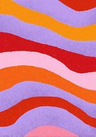 Dit kunstwerk heeft kleurrijke strepen op een paarse achtergrond, geïnspireerd op retrobehang uit de jaren 70. Oranje, roze en rood in pasteltinten worden gecombineerd met korrelige textuur, gedurfde lijnen en golvende patronen om een harmonieuze, grafische compositie te creëren. De vlakke illustratie doet denken aan zandschilderijen,…