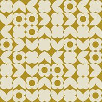 Scandinavische 70s, 60s en 50s vintage geïnspireerde geometrische kunst met gestileerde bloemen in retro kleuren. Nostalgische kleuren en texturen. Boho-chic, Retro, Mid-Century Modern, Scandinavisch, Landelijk, Nieuwe landelijke interieurstijl.