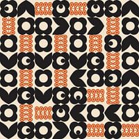 Scandinavische 70s, 60s en 50s vintage geïnspireerde geometrische kunst met gestileerde bloemen in retro kleuren. Nostalgische kleuren en texturen. Boho-chic, Retro, Mid-Century Modern, Scandinavisch, Landelijk, Nieuwe landelijke interieurstijl.