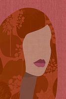 Dit kunstwerk combineert minimale portretkunst met decoratief oppervlakteontwerp. De samensmelting van gezicht en patroon voelt zowel speels als poëtisch aan. De warme kleuren - terracotta en warm bruin - creëren een gezellige sfeer, perfect voor ruimtes met een romantische, boho of eclectische stijl.