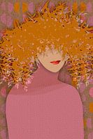 Semi abstract portret van een vrouw met bloemen als hoed.