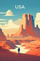 Een iconisch beeld van de Verenigde Staten in retro poster stijl