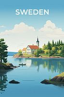 Koop dit art deco kunstwerk Retro reisposter Zweden van True Nature Art als print op canvas, aluminium dibond, (ingelijste) fotoprint, behang en ArtFrame. Voor jou op maat geprint in Fine-Art kwaliteit.