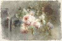 Prachtige tekening in pastelkleuren. Vaas met rozen door Margaretha Roosenboom, 1853 - 1896. Origineel uit Het Rijksmuseum.